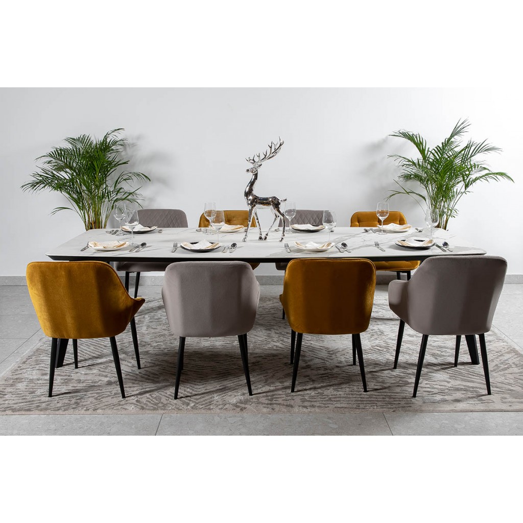 Каркас виготовлений з якісного і міцного металу, оброблений з технологією порошкового фарбування (фарба Mikroton). Столешні складаються з трьох шарів якісних матеріалів (кераміка, скло та дерев’яна підложка), що забезпечує відмінні експлуатаційні зручності. Моделі з серії Детройт доступні до придбання у двох розмірах: 240х100х76 см та 260х120х76 см. Кухонні столи Детройт – це вдале придбання для всіх, хто обожнює стриманий стиль у поєднанні з преміальним рівнем комфорту.