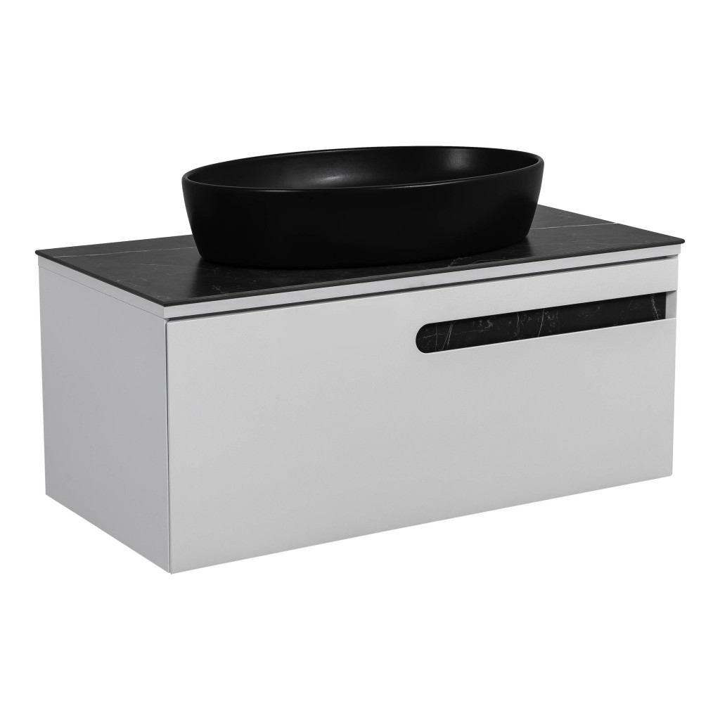 Тумба Остiн білий мат зі стільницею 70 см та умивальником One 67 см Овал чорний