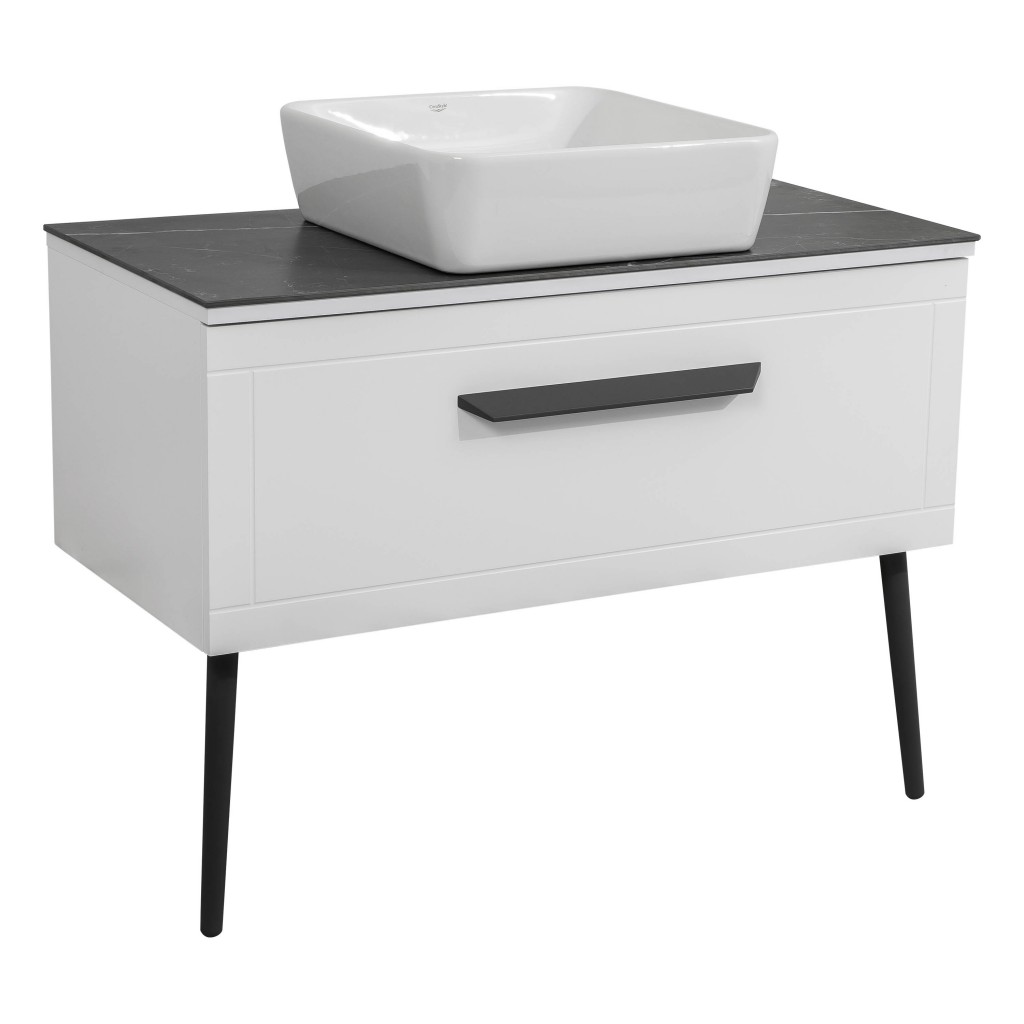 Тумба Сiєна білий мат зі стільницею 100 см та умивальником ONE 46*46 см квадрат