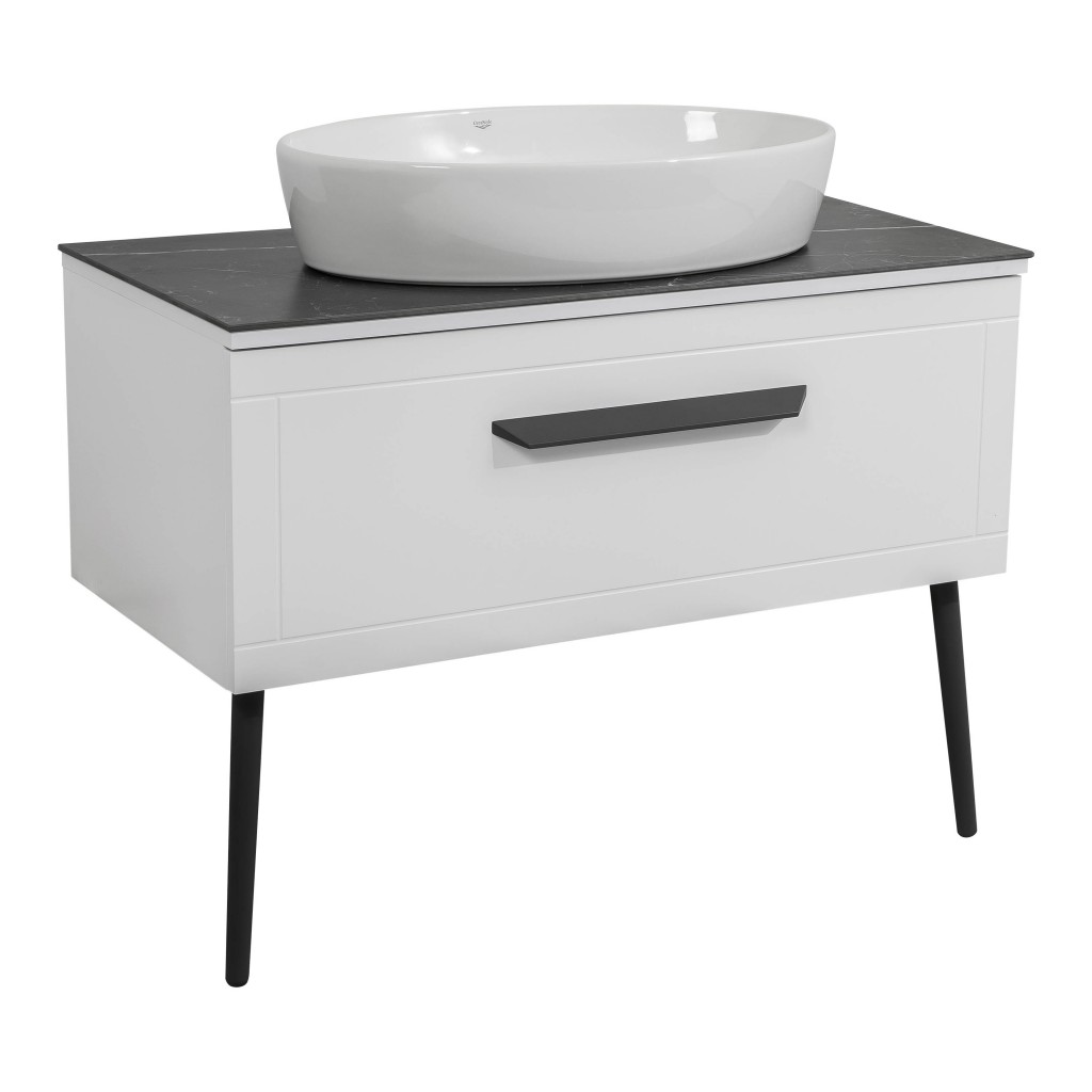 Тумба Сiєна білий мат зі стільницею 100 см та умивальником One 67 см Овал